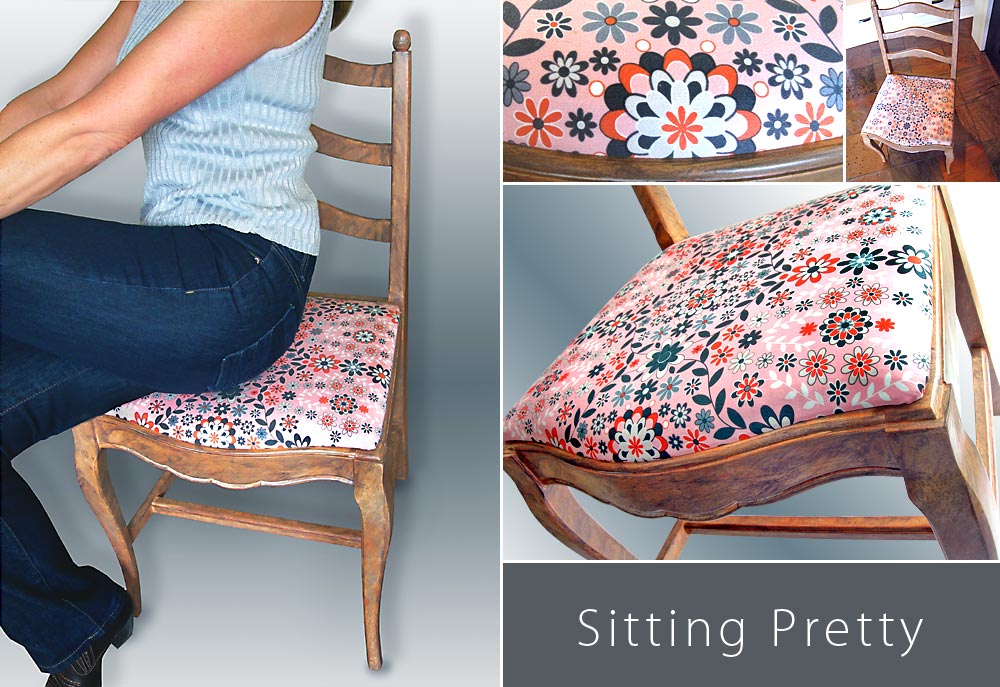 We now have a lovely new chair thanks to our previous Faux Antique Refinishing project. As a part of that process, we took off the old seat. For phase two, it’s out with the old and in with the new as we build a new cushion and cover for the salvaged wooden seat platform. If you’ve never tried this before, I think you’ll be pleasantly surprised how easy it is. Suddenly, many chairs in your house will need recovering!