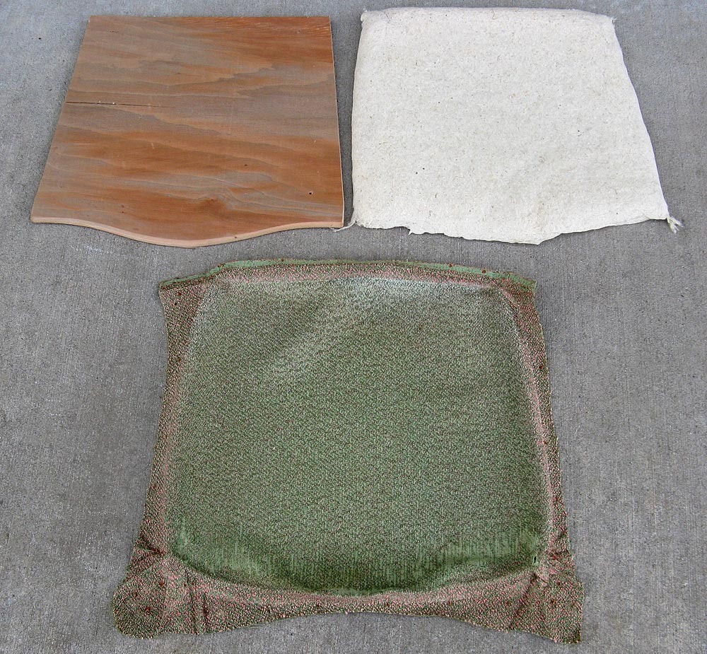 - Here are the three pieces that made up our old seat cushion. We’ll keep the wooden seat platform, but will create a new cushion and covering.
