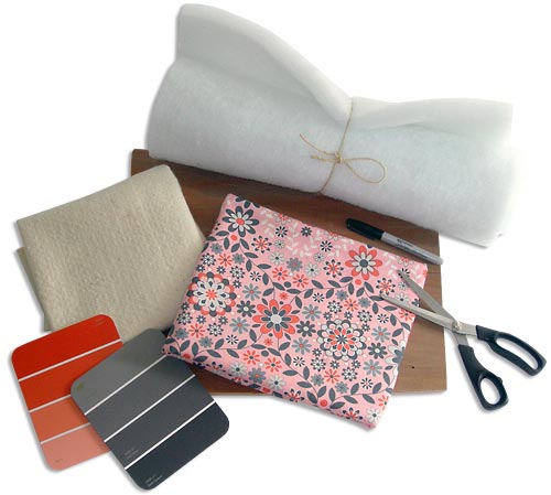 - How much of everything you need will depend totally on the size and shape of your chair, and if you are doing more than one chair. I suggest taking your chair apart first so you can use the actual seat to determine the exact size and amount of foam, batting and fabric you need. For our chair, we used Fairfield’s NuFoam in a 1″ thickness, Kyoto lightweight bamboo batting, and the Silent Cinema fabric, which – as mentioned above – is a heavier home décor weight. The paint swatch cards in the photo simply show we took the fabric to the paint store to get a good match for the initial refinishing project.