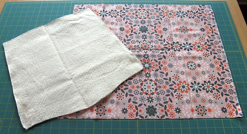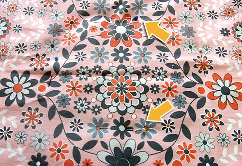 - Drape the fabric over the cushion/batting. Use your ruler to make sure your motif is centered.