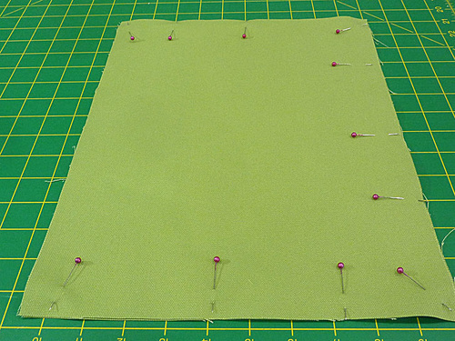 - Place the two interfaced panels right sides together. The raw fabric edges should be flush on all sides. Pin in place along both sides and across the bottom. The top remains open.