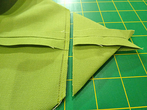 - Trim away the folded peak close to the second seam. If you are brand new to making boxed corners, check out our tutorial for step-by-step instructions.