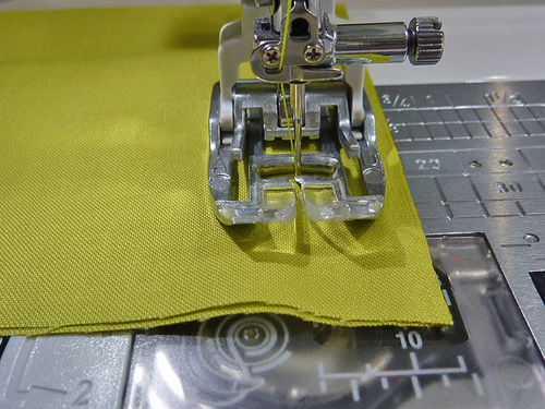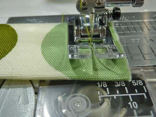 - Using a ½” seam allowance, stitch along both sides and across the bottom, pivoting at the corners.