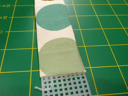 - On one end, pull back the plastic canvas strip just far enough to allow you to sew a ½” seam across that end.