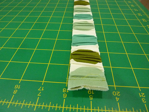 - Run a gathering stitch the length of the strip, approximately ½” from the raw edges.