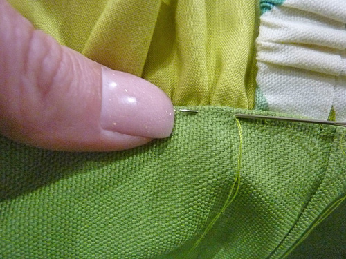 - When you reach your starting point (at the side seam as recommended), fold under the raw end approximately ½”, trimming away any excess.