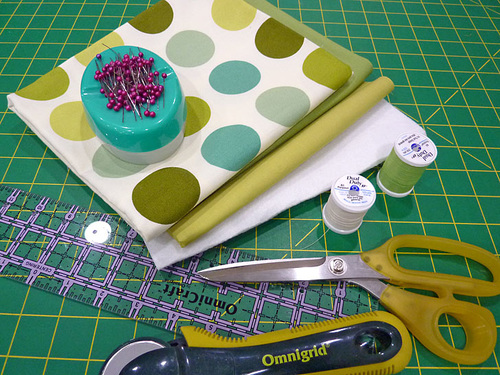 - Find the two exterior fabric panels and the two heavyweight interfacing panels.