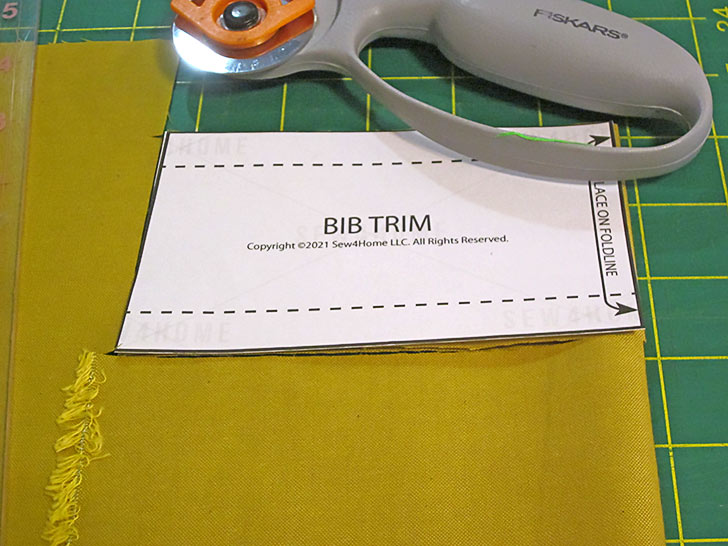 Using the trimmed and taped pattern, cut ONE for the bib on the fold