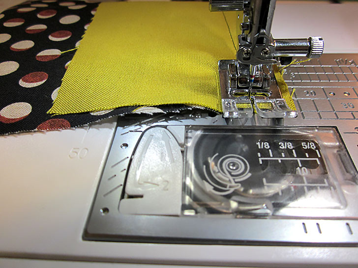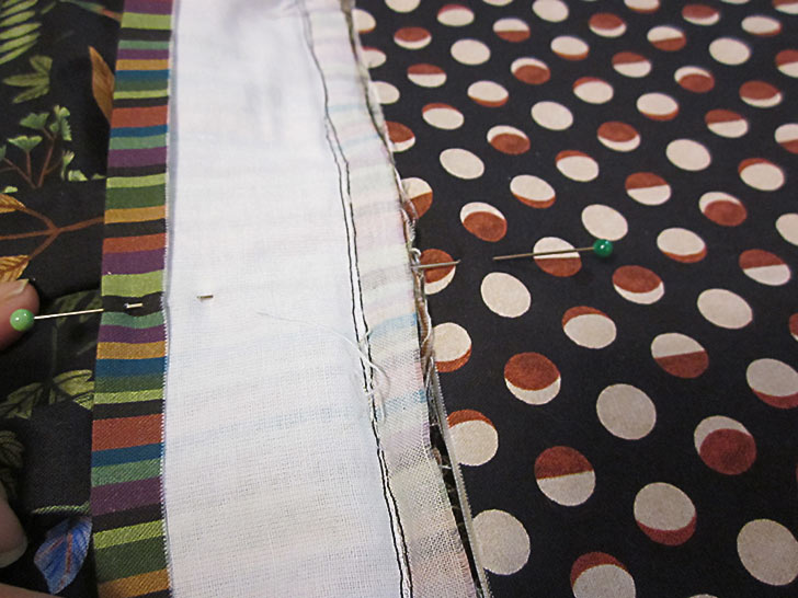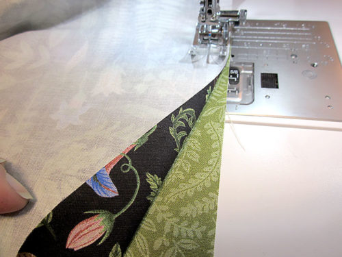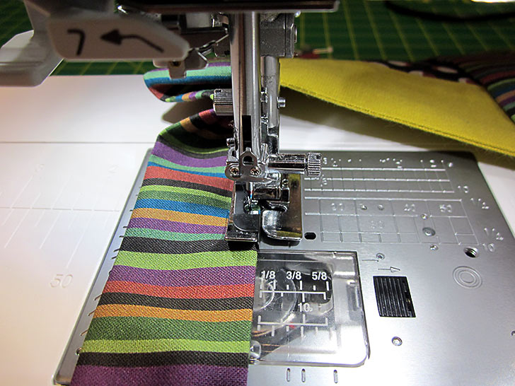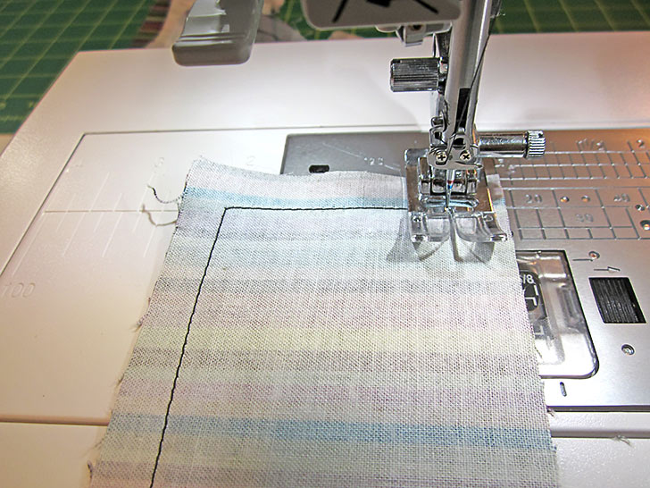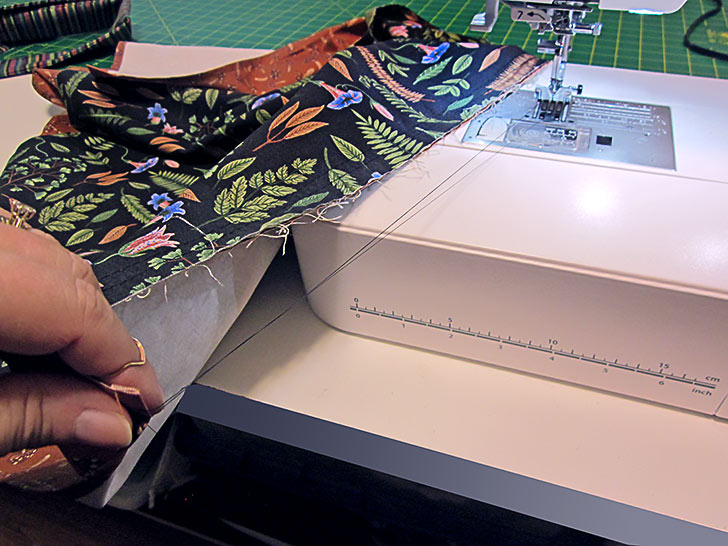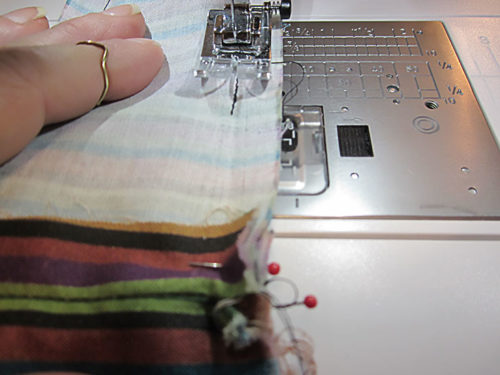 - Using a ½” seam allowance, stitch across, which means you are stitching right along the edge of the fused interfacing.