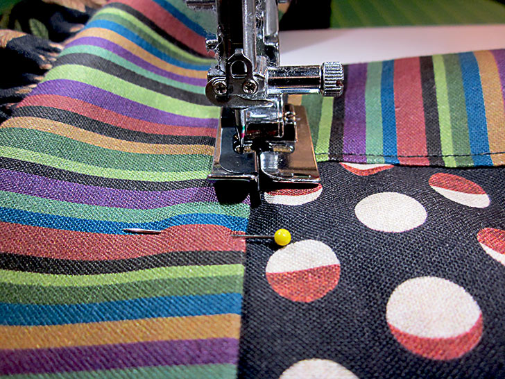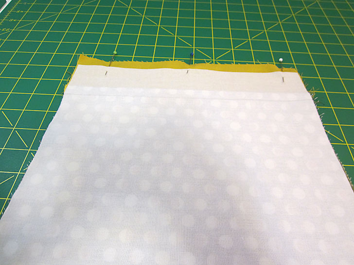 - Pin along both sides and across the bottom. The top remains unpinned.