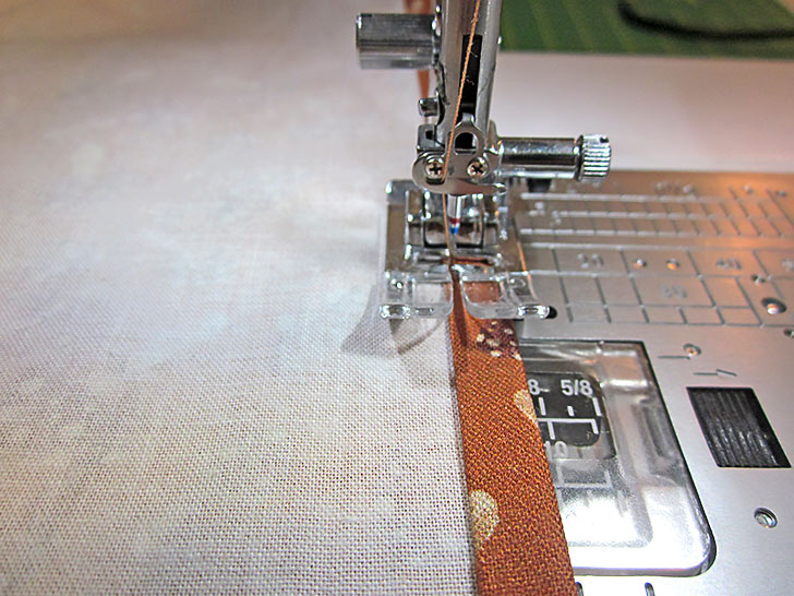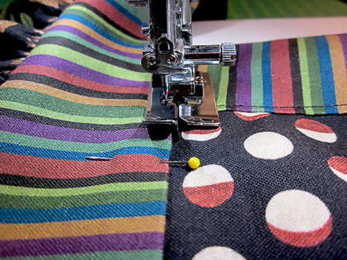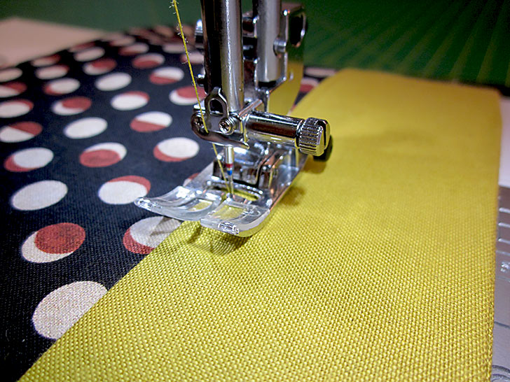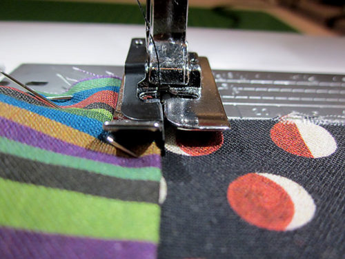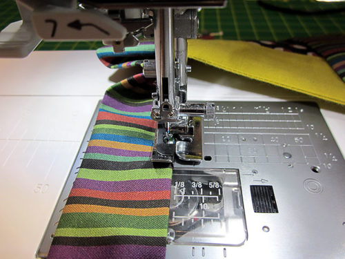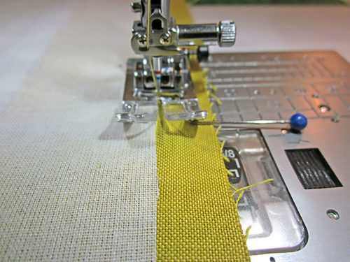 NOTE: We used our Blind Hem foot with its center flange to keep a straight, narrow seam. This is helpful but optional; a standard presser foot would also work.