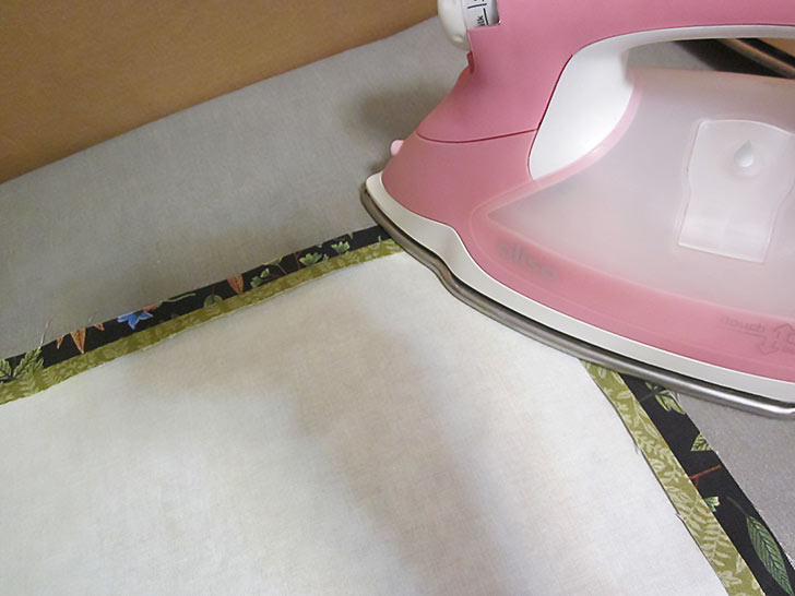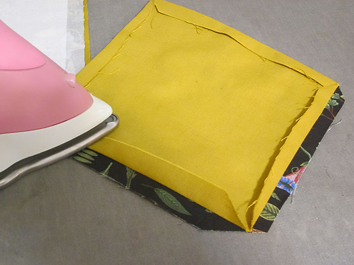 - Turn under an additional ¼” and press again. At each corner make a clean diagonal point.