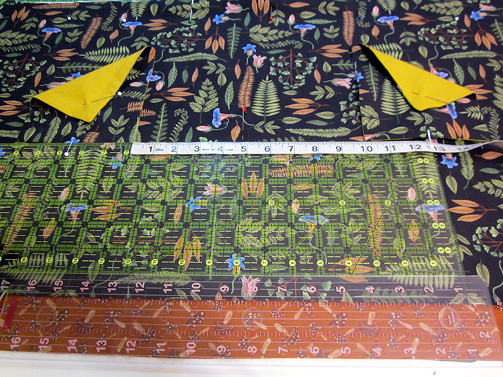 - Find the TWO 33” x 18” panels that will make up the overskirt (Leaves in Dark Green for the front and Tone on Tone Leaves for the lining in our sample).
