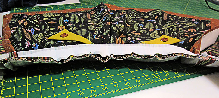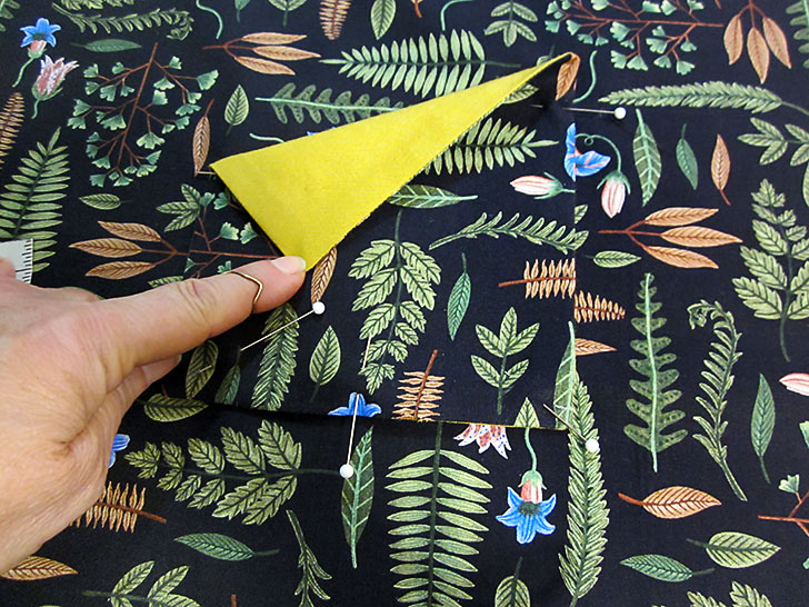 - Lightly press the flap fold. Re-pin the side of the pocket if necessary.