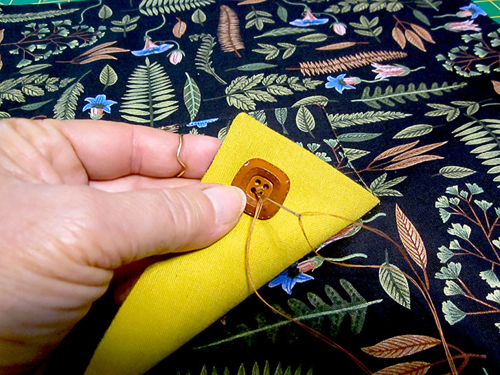 - The button should be centered in the point of the flap. We recommend taking a few stitches through just the button and the point of the flap so the knot of the thread will be hidden under the flap.