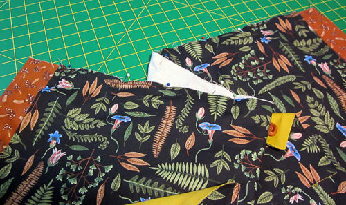 - Turn right side out through the 3” opening. Gently push out all four corners so they are sharp, 90˚ angles. A long, blunt tool, like a knitting needle, chopstick or point turner works well for this.