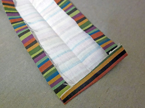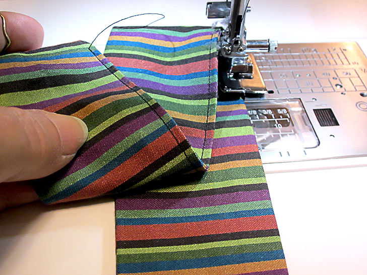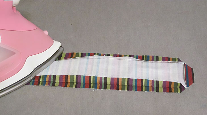 - Re-fold each strip along the original center crease line and press well again. Each tie is now finished along both long sides and one end.