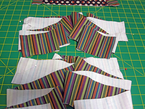 - Using a ½” seam allowance, stitch the two short seams in both assembled sets of three.