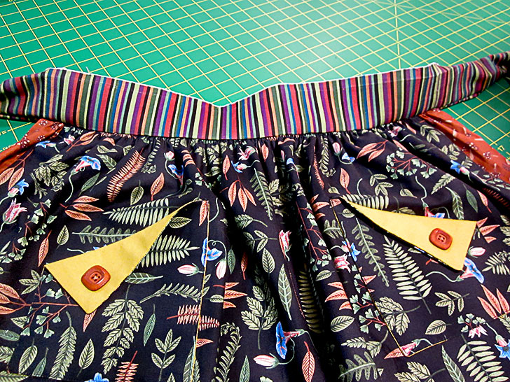 Place the pockets on the overskirt