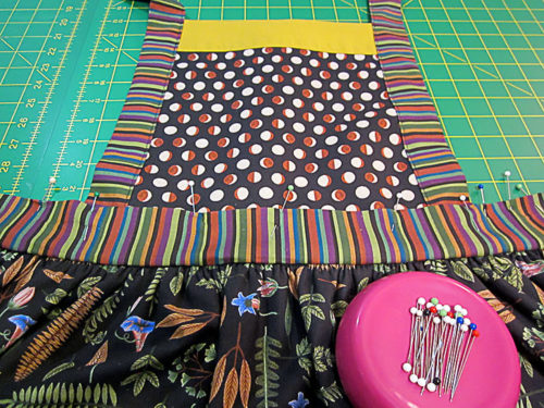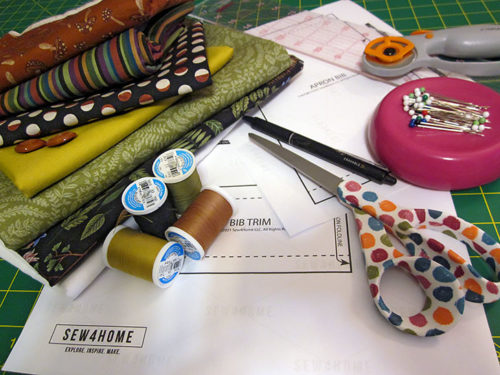 When you put together an apron, you’re working with nice, big panels of fabric so you can really take advantage of complete motifs and lots of color blending. In this case, you’ll be mixing and matching up to six different fabrics. Changing out fabric on a project is a bit like giving your walls a fresh coat of paint; there’s a new look every time.