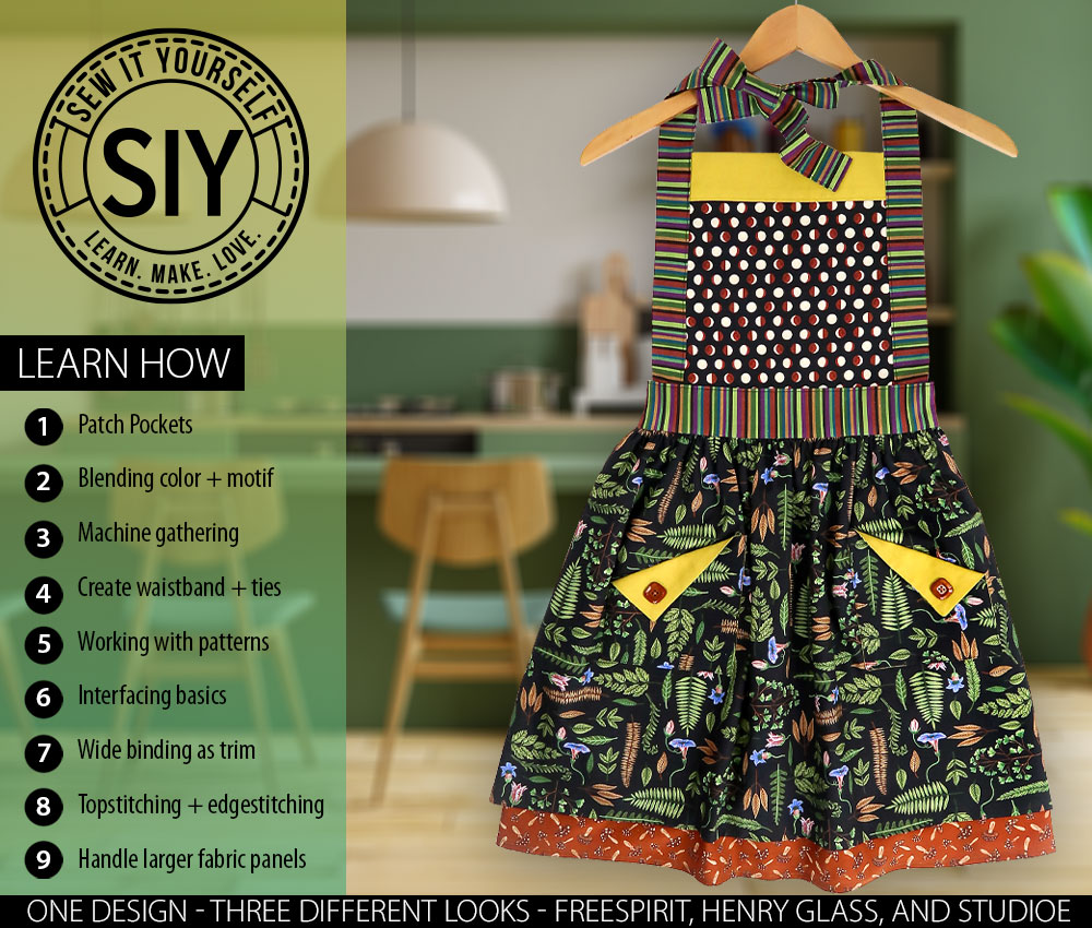 A beautiful apron is the perfect introduction to clothing construction. When you’re just starting out on your sewing journey, an apron allows you to practice some traditional garment sewing techniques in an easy, flat format. Our third project in the SIY-Sew It Yourself!™ series we originally did in partnership with Jaftex is a classic bib-and-skirt apron design – a favorite of cooks everywhere.