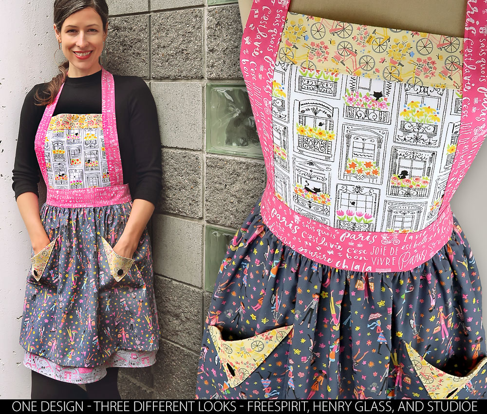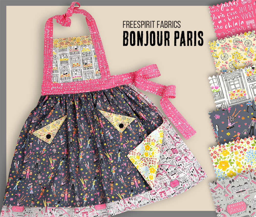 The Bonjour Paris apron by Anne Keenan Higgins for FreeSpirit Fabrics is full of “soif de vivre” – a thirst for life! Its chic style blends soft chalkboard pastels with pops of unexpected brights.