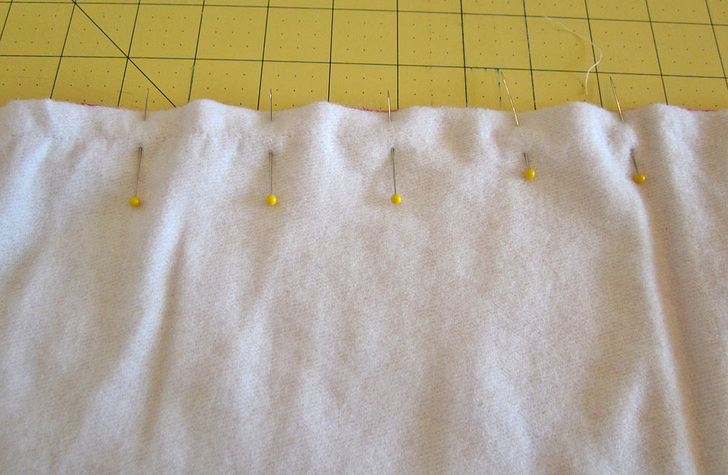 - Fold the side edges to the back ⅝” and pin in place.