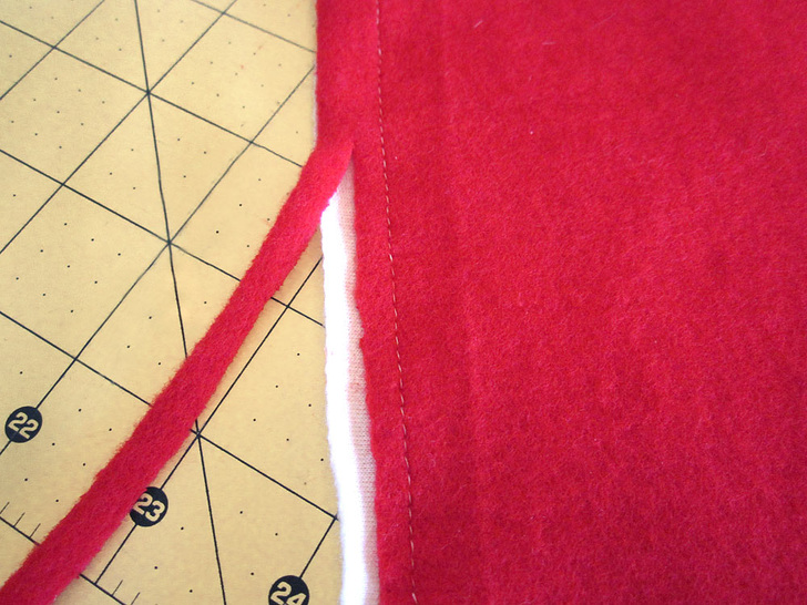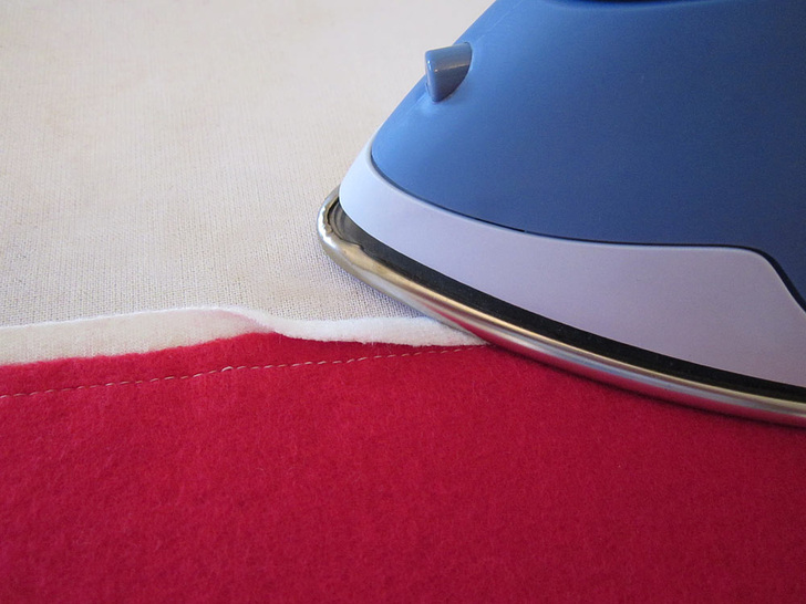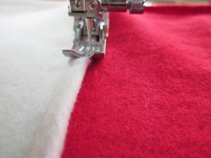 - Stitching on the wrong side means you will be stitching within the opposite color from what will show on the front. In our sample, for this first set of panels, that meant we stitched in the white panel from the wrong side so it showed up in the red panel from the front.
