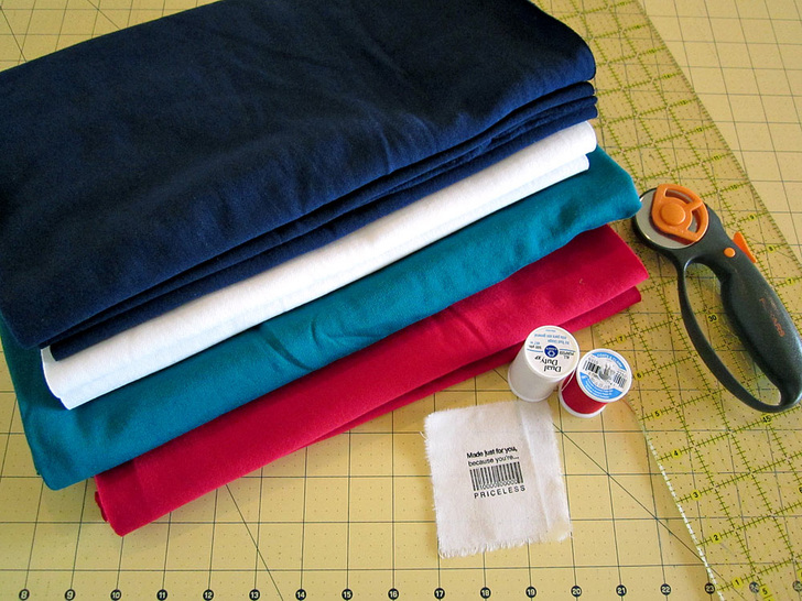 We used a preppy color palette of super-soft organic knits from Fabric.com. Not only are these exact colors available, there are other options from which to choose.