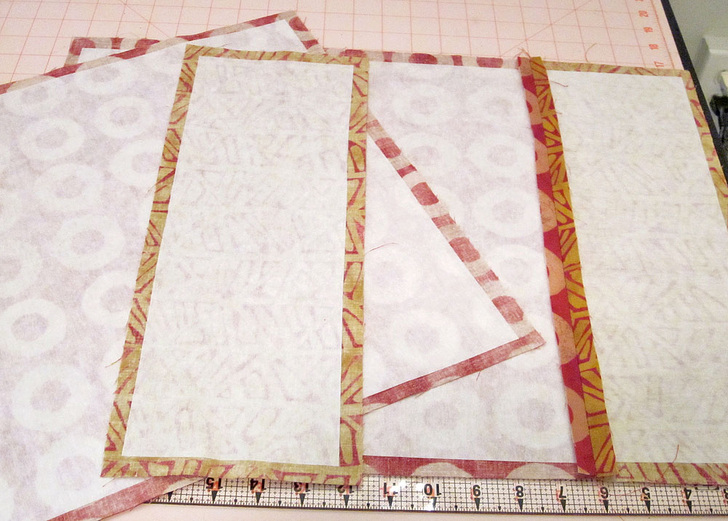 - Find the two exterior wrap-around panels, the two exterior inset panels, and the interfacing pieces.