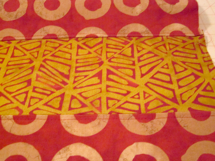 - You should now have one long strip: inset – panel – inset -panel. Leave the final raw edges of the second wrap-around panel and the first inset panel un-sewn for now.