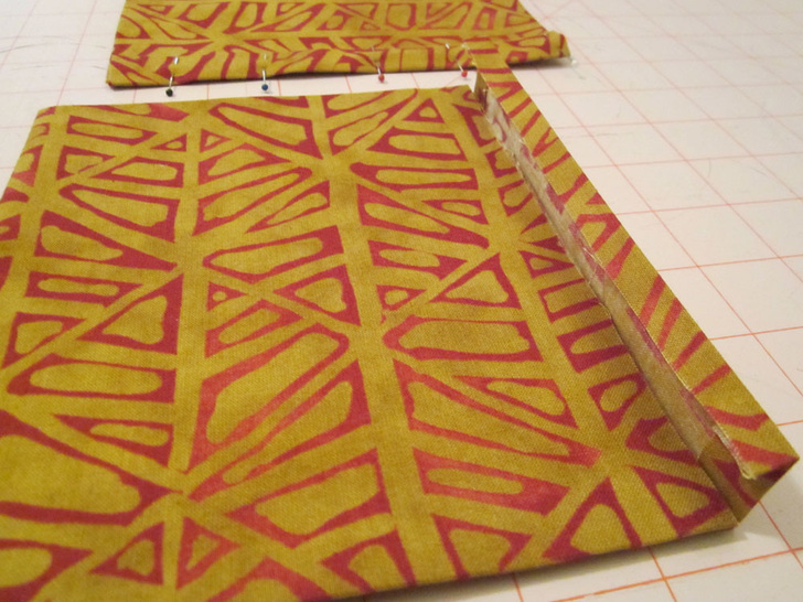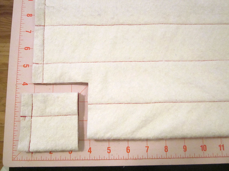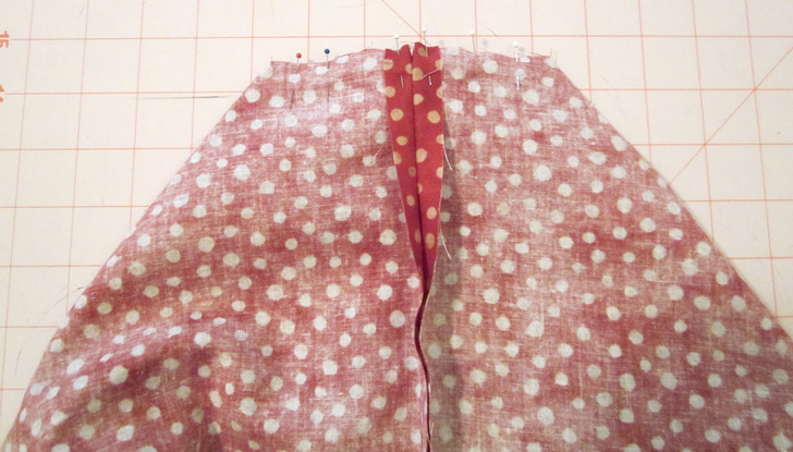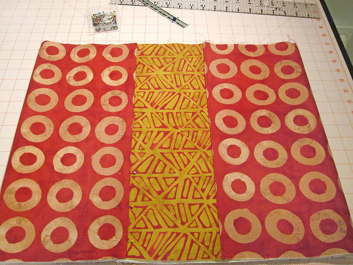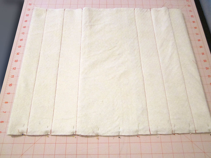 - Press the exterior “loop” one more time, then turn wrong side out. Carefully align all the panel seams, then pin along the bottom edge.