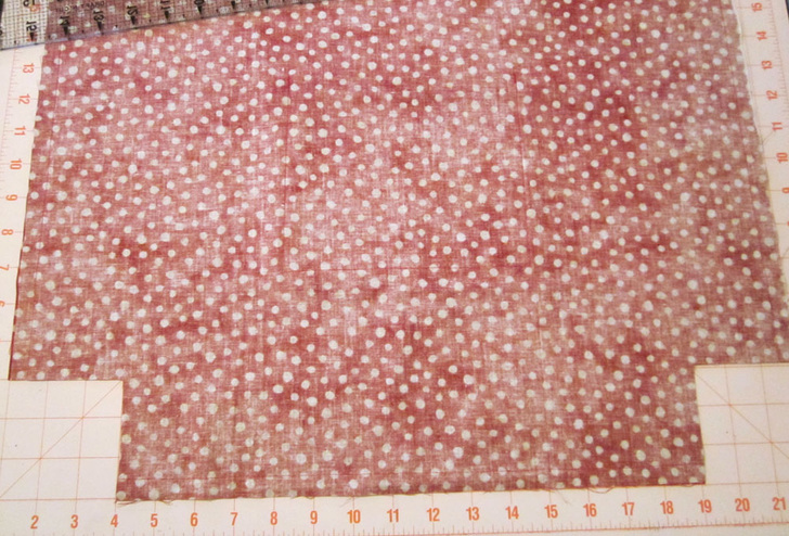 TWO 13″ wide x 8″ high rectangles - From the fabric for the bag’s lining and binding (Brick Red Speckled Dots in our sample), fussy cut the following: