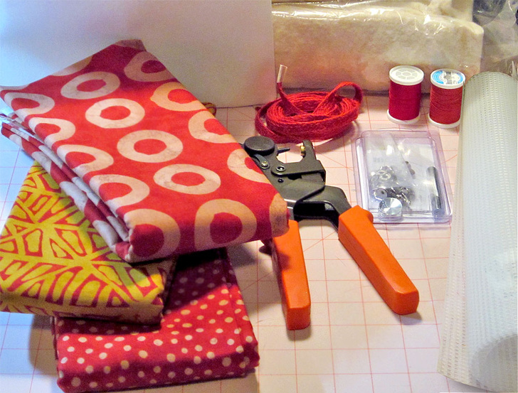 - 2 yards of ½” wide webbing for optional handle accent stripe: we used a dyed jute webbing in warm red purchased locally