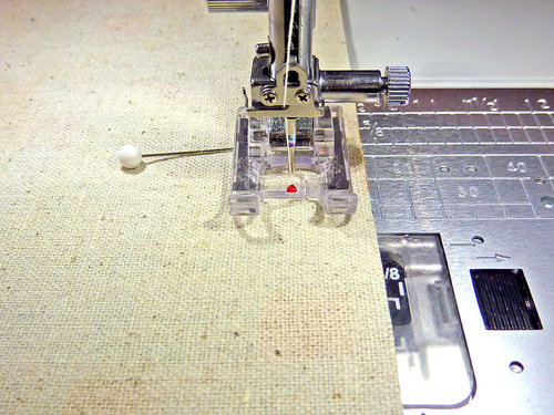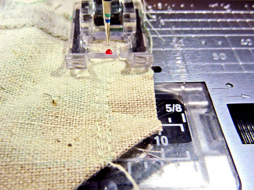 - Using a ½” seam allowance, double stitch across the corner.