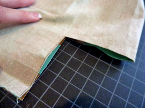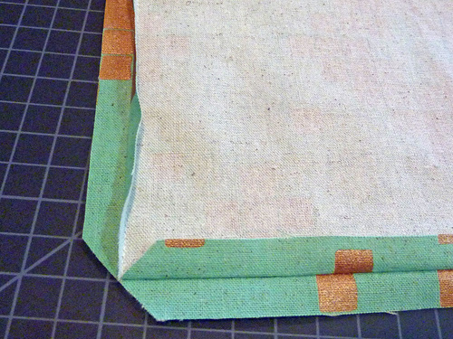 - Along the top of the exterior bag, make a 3½” hem. To to this, re-fold the top raw edge along the original ½” crease line and press.