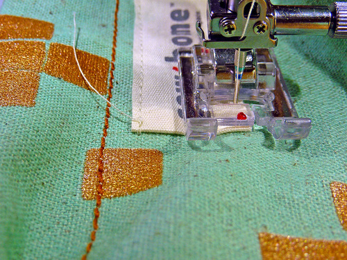 - Re-thread with the heavier, contrasting thread in the top and bobbin.