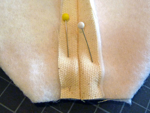 - Flatten the loop, making sure the four seams are correctly positioned: upper seams center front and center back, lower seams along each side.