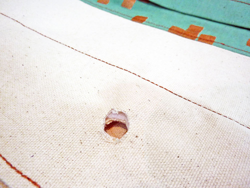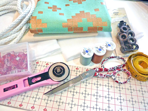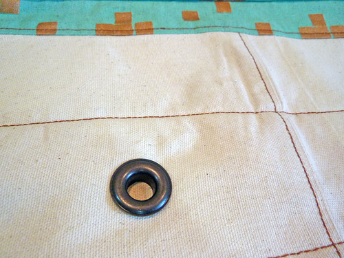 - EIGHT Extra Large Eyelets (grommets) and appropriate setting tools; they need to be large enough to fit your chosen rope – we used an antique brass, purchased locally – Dritz Extra Large Eyelet Kits with Setting Tools are always a good choice