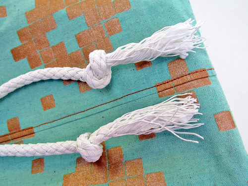 The rope handles act as their own drawcord, weaving through eight metal grommets with great chunky knots at either side.