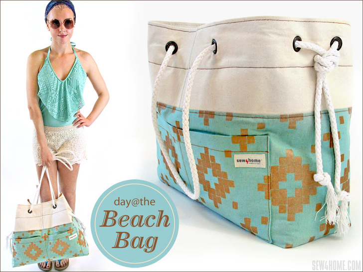 Our big beach bag is all cotton so it breathes well and dries in a snap, but it’s not completely waterproof and so isn’t designed to take a dip in the salty surf. Its job is to keep you looking good on your way to the water’s edge. We’re on board with that! We originally used a beautiful cotton/linen blend canvas paired with natural cotton canvas duck. It’s a super stylish combo for an on-the-go beach tote. Rope handles add a nautical touch and make it easy to open wide so you can load up plenty of towels and other important beach gear. Don’t forget the sunscreen.