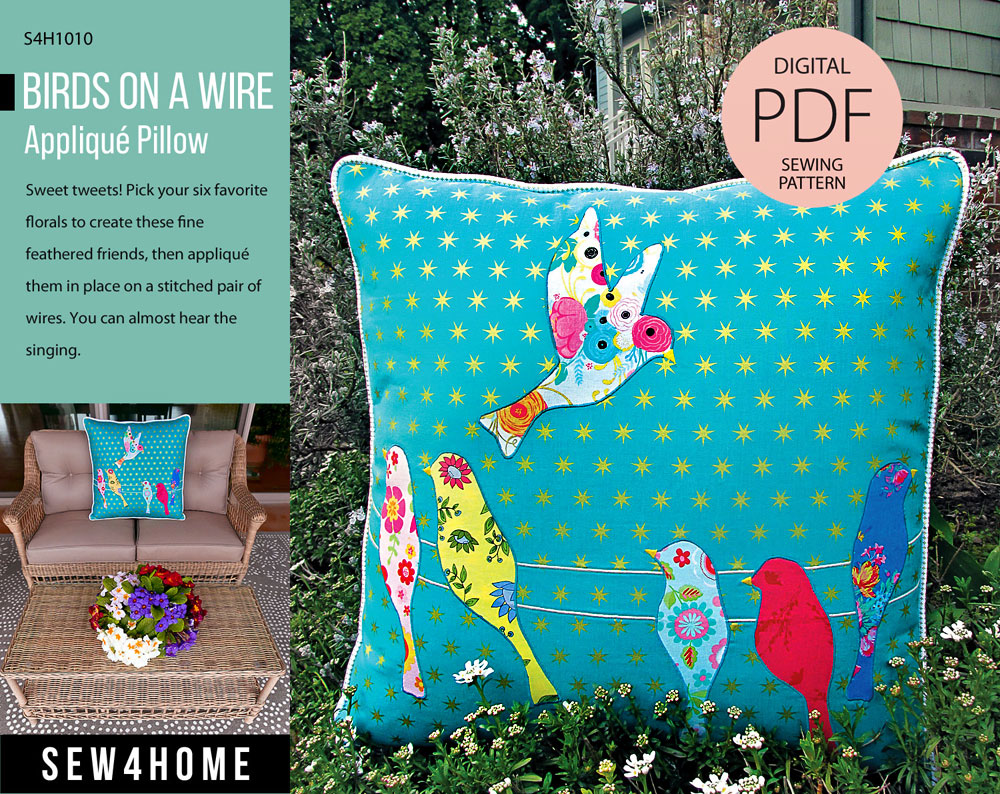 The full Birds on a Wire Appliqué Pillow pattern set is just $5.50, which is a fraction of the cost of most independent and commercial patterns.