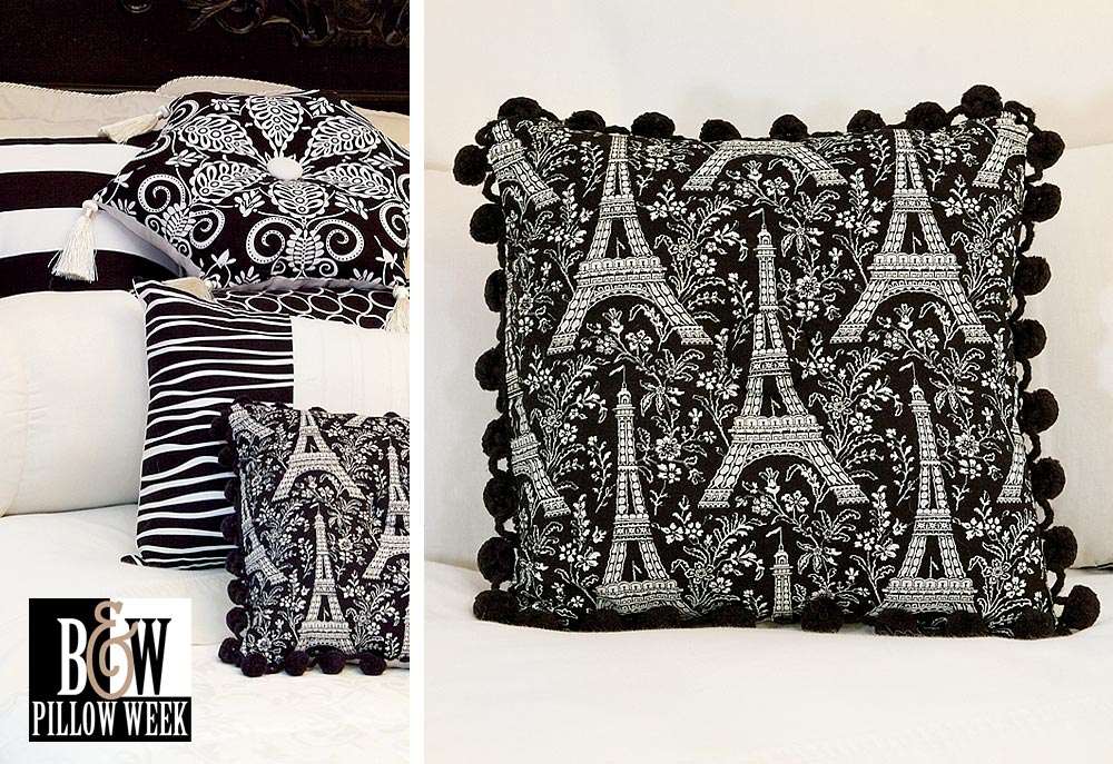 Did you know the Eiffel Tower was built as the entrance arch for the 1889 World’s Fair? Its graceful lattice ironwork has attracted visitors for 121 years. I wonder if our beautiful Eiffel Tower Pom Pom Pillow with its tufted center and covered buttons will last that long? This is a super-simple pillow, but the finished look is one that would go for BIG bucks at stores and in catalogs. You can make one for a fraction of retail, and it will be unique to you. Vive l’Pillow!
