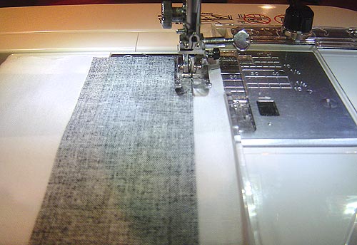 NOTE: Be sure to sew with the VERTICAL stripe on top so you can tell you are sewing right between the black and white stripe. It’s a nice, straight line to follow.