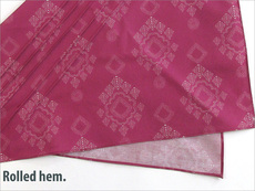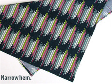 These scarves are super fast to make. We used two different finishes for the hems on our scarves, and we offer full, step-by-step tutorials for each: machine sewn rolled hems and narrow hems with neat corners.