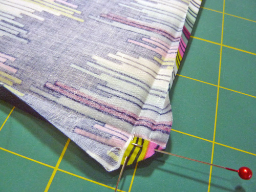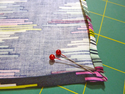 - Draw in two additional guide lines: one 3” in from the top hemmed edge and one 3” from the perpendicular side hemmed edge.