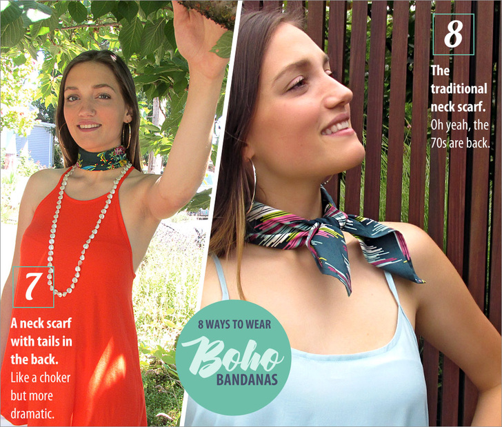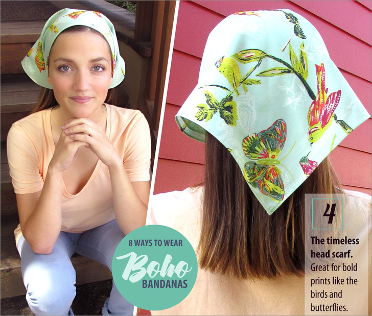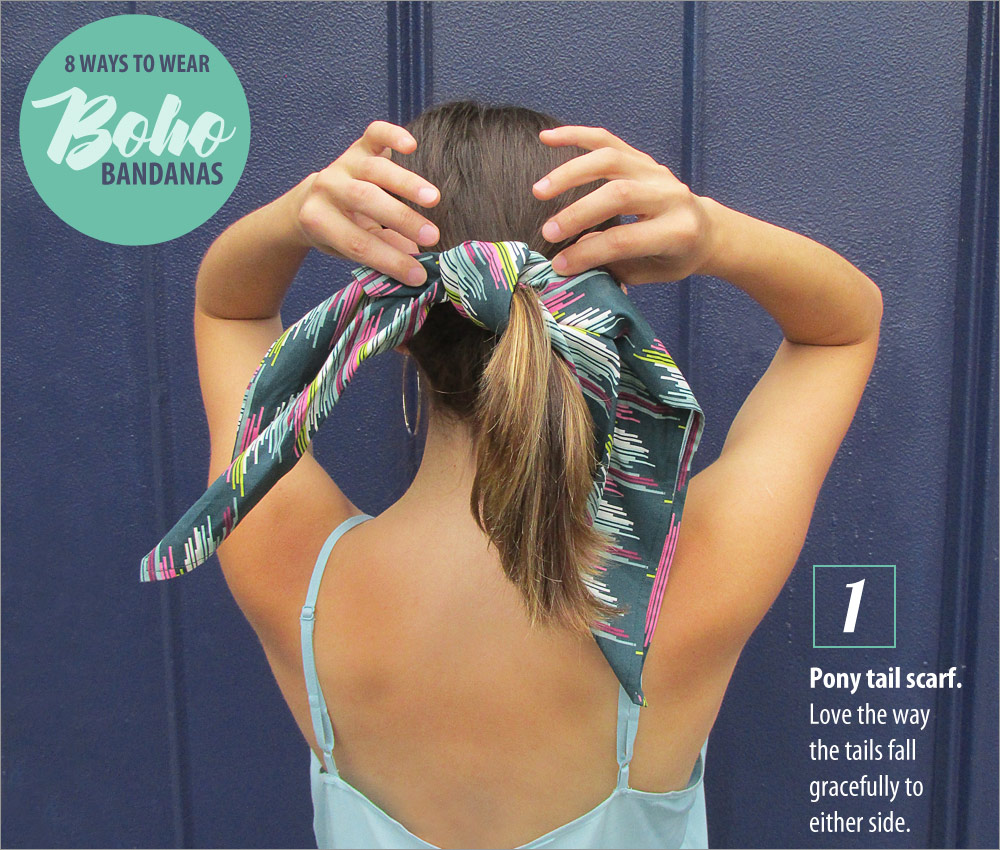 According to style watchers, one of the season’s must-have accessories is the bandana. It’s featured regularly as a head scarf but is just as popular tied around the neck, the wrist, and even onto bags and totes. And here’s the latest fashion flash: you don’t have to use traditional bandana fabric. In fact, many sites and magazines are showing all kinds of patterns and colors. Excellent!