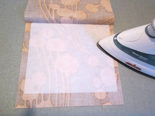 - Following manufacturer’s directions, fuse the interfacing to the fabric. Be careful with your iron so you are only fusing onto the fabric.