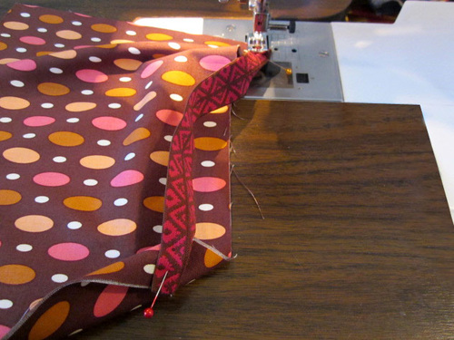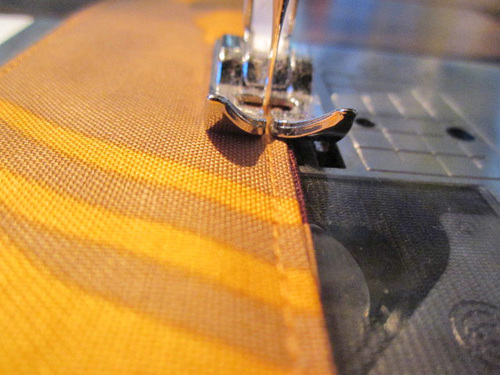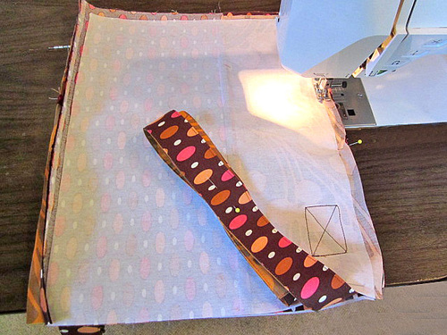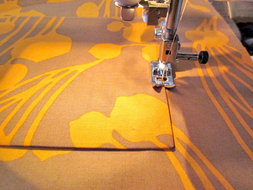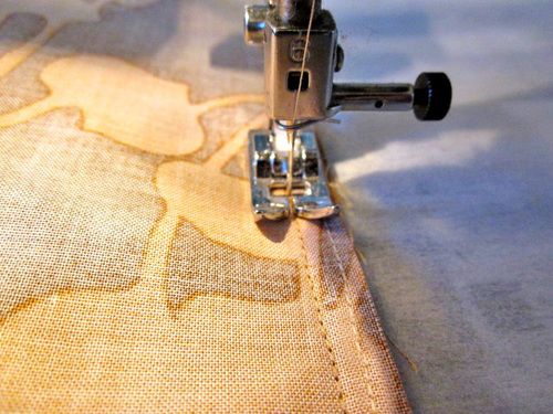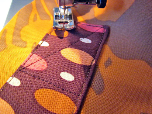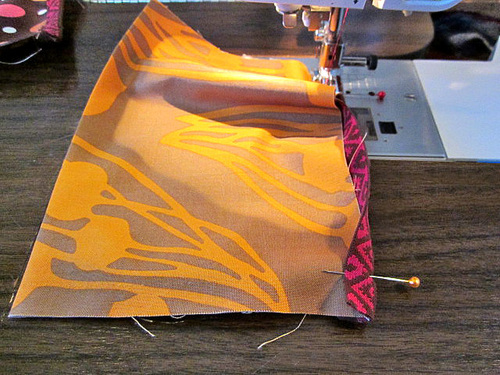 - Using a ½” seam allowance, stitch along both sides and across the bottom, pivoting at the corners.