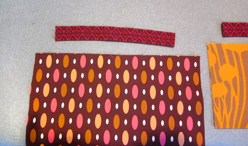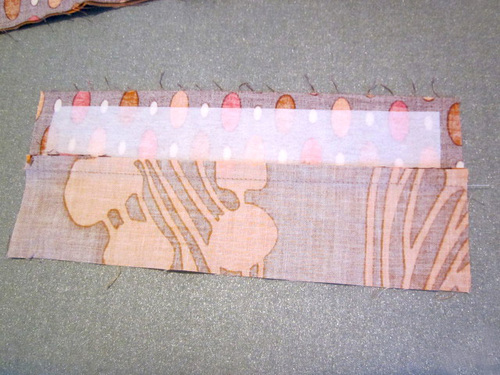 - Find both the strap and strap tab fabric strips and the corresponding interfacing strips.